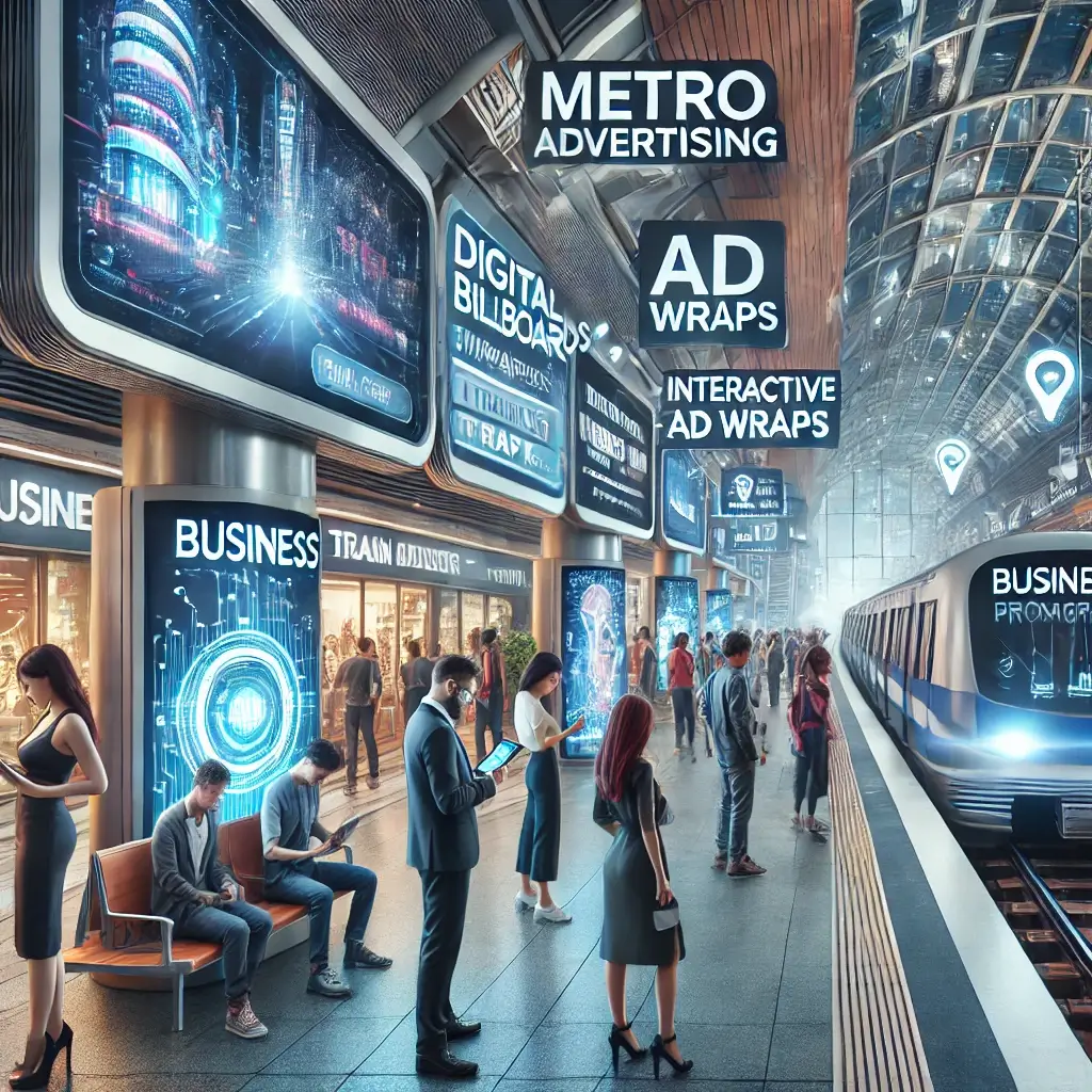Metro advertising promotes brands through ads displayed inside and outside metro trains and stations.